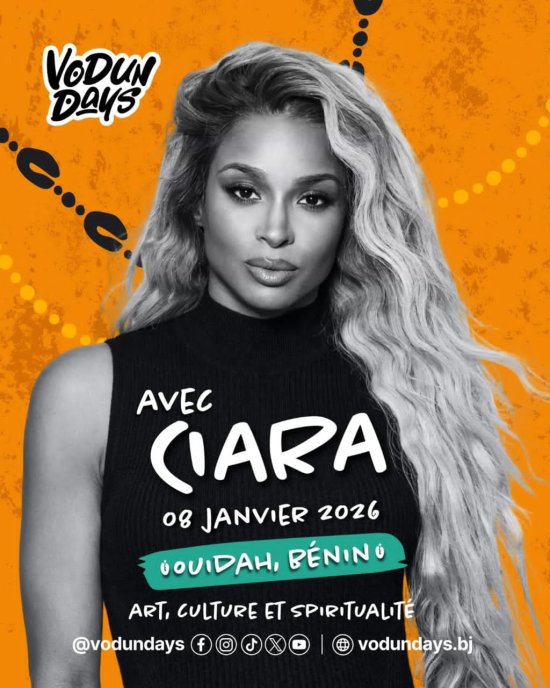 Ciara, la chanteuse américaine sera sur scène à Ouidah pour le géant concert des Vodun Days le 8 janvier 2026. Elle va animer la scène aux côtés de plusieurs autres stars africaines dont la diva Angélique Kidji, Davido du Nigéria, Meiwey de la Côte d’Ivoire, et plusieurs autres artistes de renom.