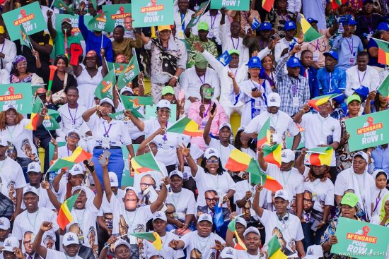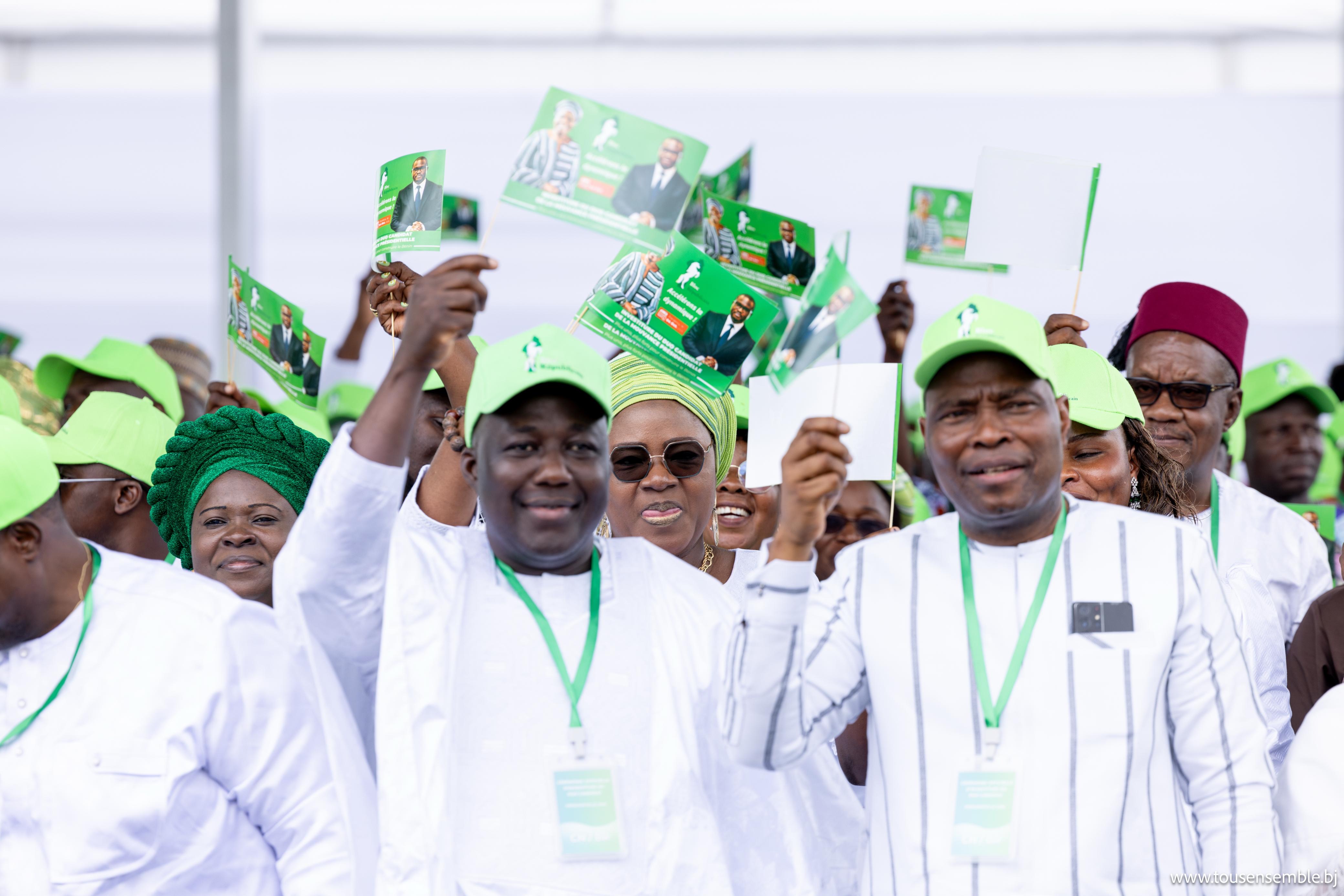 Le stade municipal de Parakou a accueilli ce samedi 04 octobre 2025, la cérémonie d’investiture de Romuald Wadagni-Mariam Talata, duo candidat de la mouvance à l’élection présidentielle 2026. Tous les présidents des quatre partis politiques de la majorité présidentielle (UPR, BR, Moele Bénin et Renaissance Nationale ) ainsi que le président de l’Assemblée nationale sont présents à Parakou. Les militants ont fait massivement le déplacement. Le stade municipal de Parakou est plein comme un oeuf. En images, les forts forts de cette cérémonie.