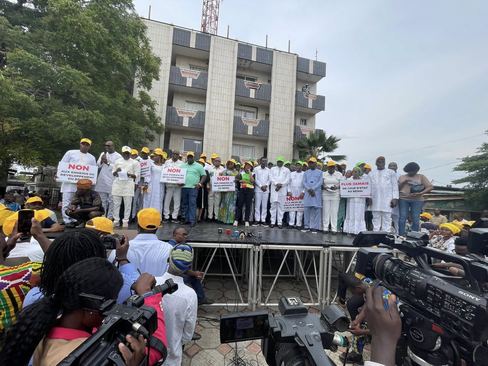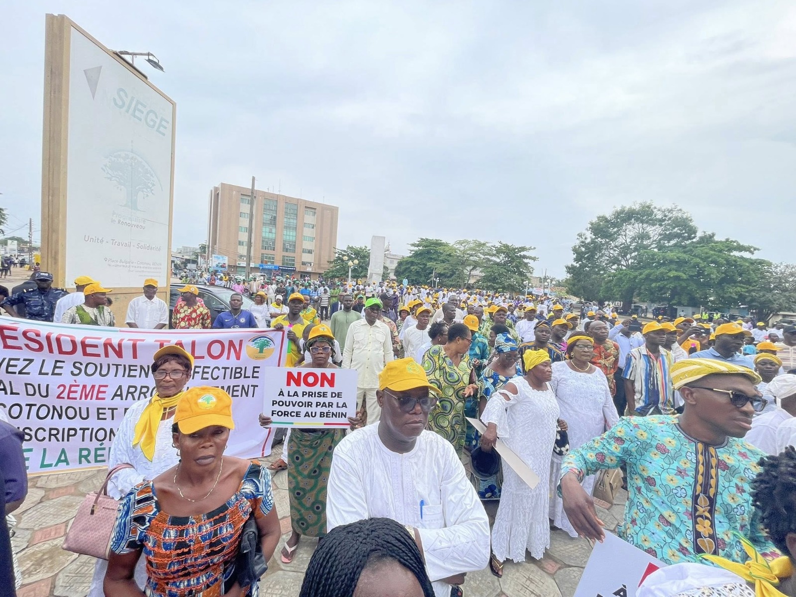 Les militantes et militants des partis Union progressiste le renouveau (UP-R), le Bloc républicain (BR), le Mouvement des élites engagés pour l’émancipation du Bénin (MOELE-BENIN), la Force cauris pour un Bénin émergent (FCBE), les populations de Cotonou, acteurs politiques, députés et plusieurs autres personnalités sont mobilisés à la Place Bulgarie dans l’après-midi de ce lundi 08 décembre 2025. Seul objectif, dire NON à toute tentative de prise de pouvoir par la force.
