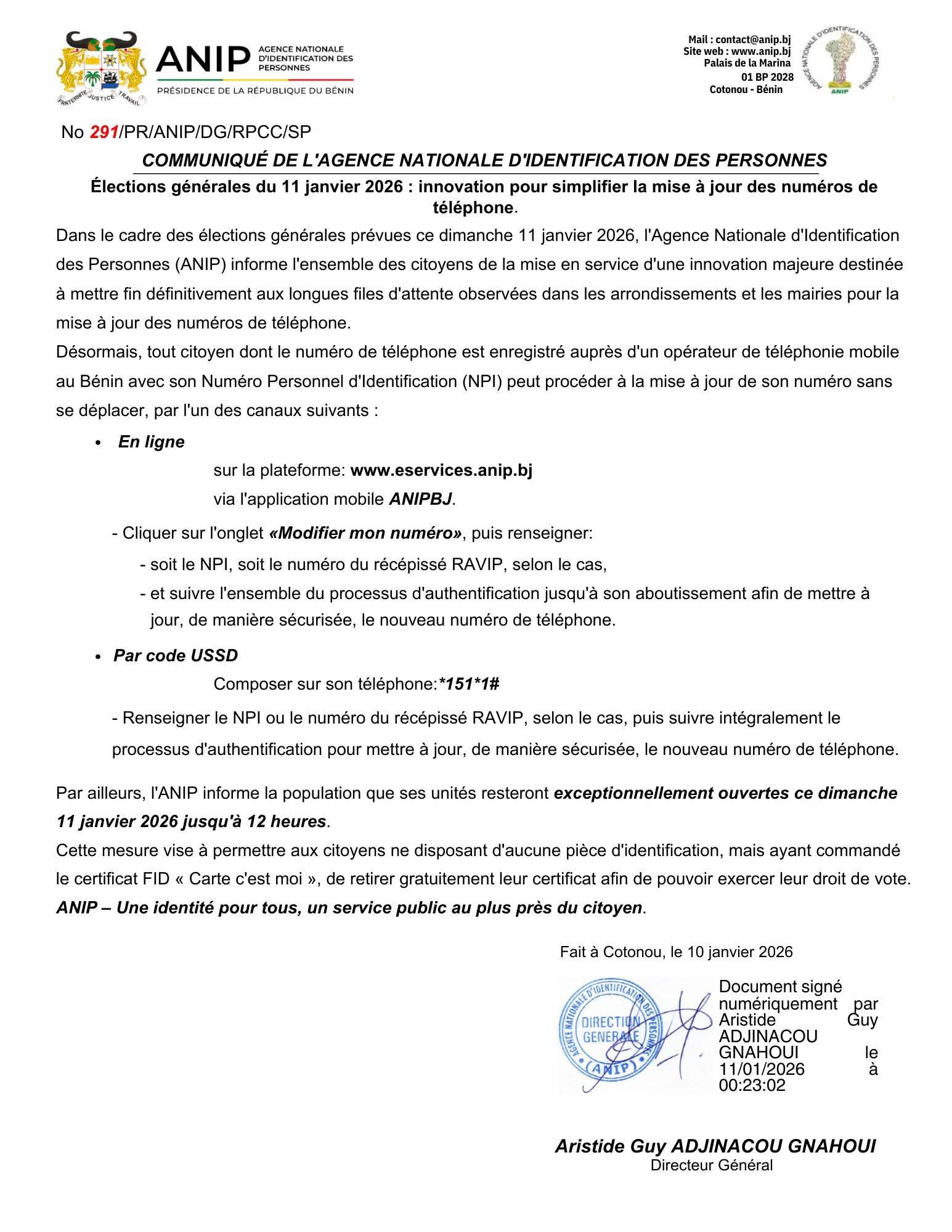 Les citoyens peuvent désormais mettre à jour leur numéro de téléphone enregistré auprès d’un opérateur Gsm au Bénin sans se déplacer dans les arrondissements et les mairies.