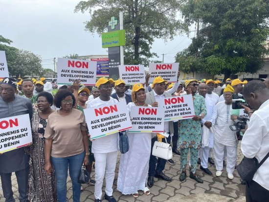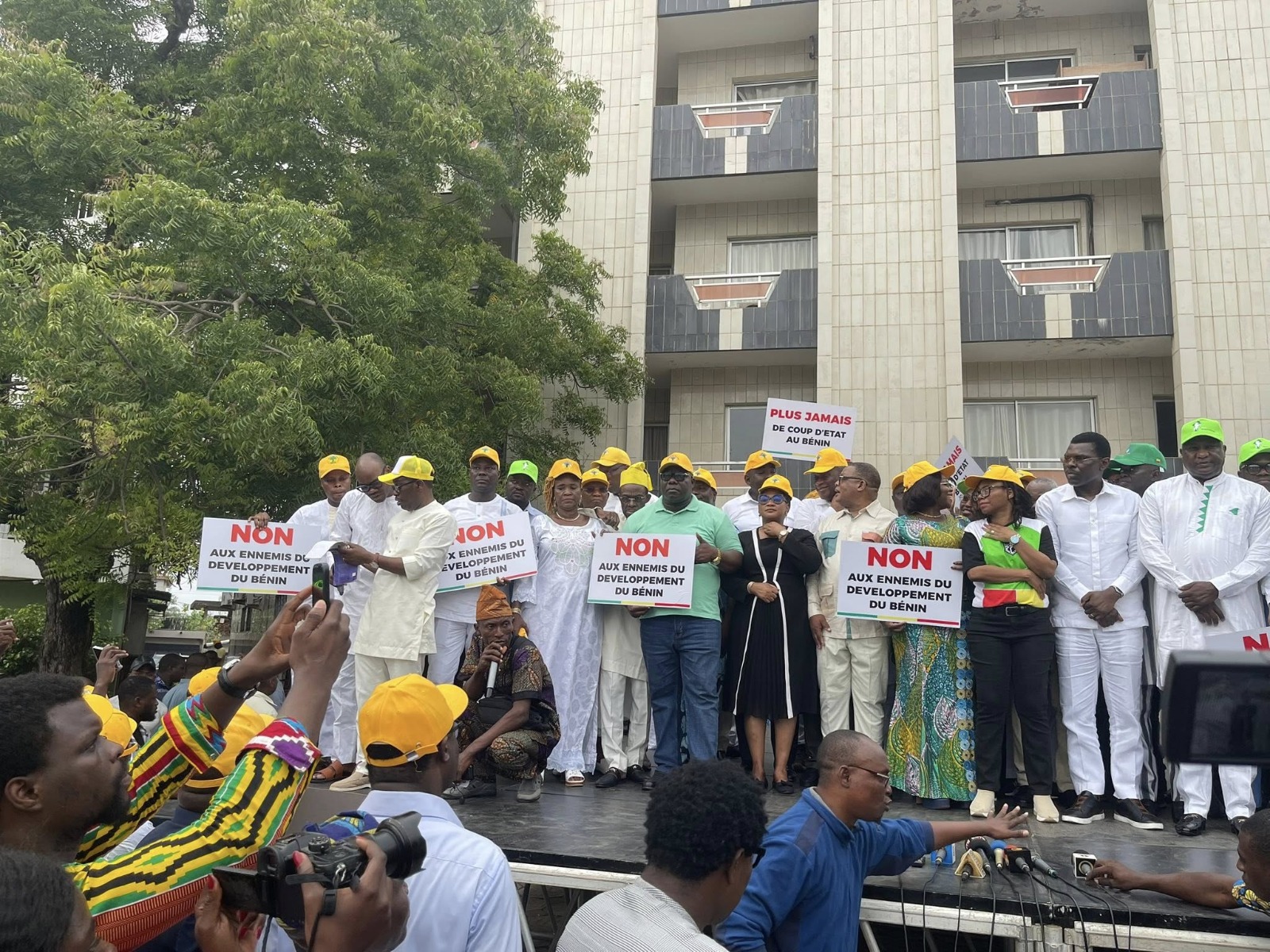 En soirée, militants et sympathisants du parti Union Progressiste le Renouveau (UP-R) se sont retrouvés à la Place Bulgarie. Vêtus de blanc et casquettes jaunes sur la tête, ils sont rassemblés pour dénoncer le coup de force. Des responsables du parti étaient présents.