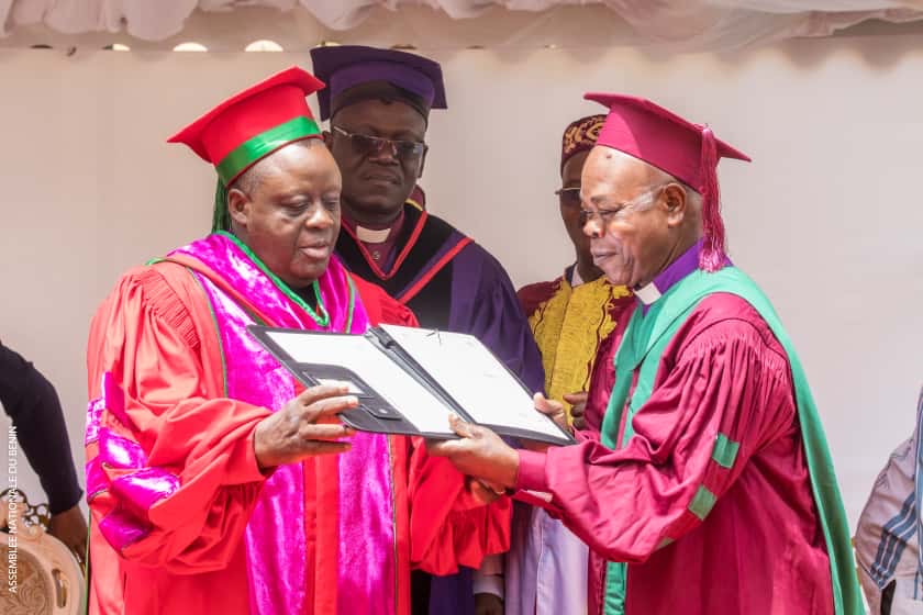 Avec ce titre, le président Louis VLAVONOU devient ainsi la 10ᵉ personnalité distinguée par l’UPAO et la première personnalité politique à qui le titre de Docteur HC est décerné au Bénin. C’est ce qui ressort de la lecture solennelle de la délibération par Dr Maxime SÈTONDJI, directeur de l’École doctorale de théologie de l’UPAO.