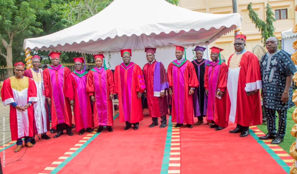 Aux côtés du nouveau Docteur pour cette cérémonie de remise de titre, figuraient en première loge : M. Victor Dassi ADOSSOU, président de la Cour suprême, Mme Ismath BIO TCHANE MAMADOU, présidente de la Cour des comptes, M. Pascal ESSOU, Médiateur de la République, M. Edouard LOKO, président de la Haute Autorité de l’Audiovisuel et de la Communication (HAAC), l’honorable David Godonou HOUINSA, Deuxième secrétaire parlementaire, M. Charlemagne YANKOTY et M. Franck OKPEITCHA, respectivement maire de Porto-Novo et maire d’Ifangni.