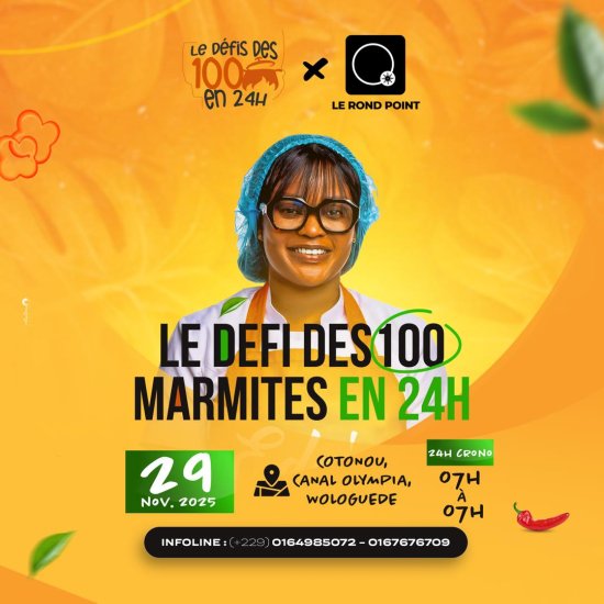 Une grande première dans la restauration béninoise. Depuis plusieurs semaines, une information devenu virale sur les réseaux sociaux annonce qu’ Eden food cuisinera 100 marmites en 24 heures du samedi 29 à partir de 7 heures au dimanche 30 novembre à 7 (…)