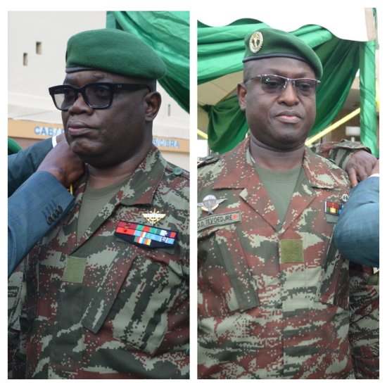 Lors d’une cérémonie solennelle ce lundi 05 janvier 2025 à Cotonou, deux hauts responsables de l’armée ont officiellement reçu leurs nouveaux attributs de généraux.