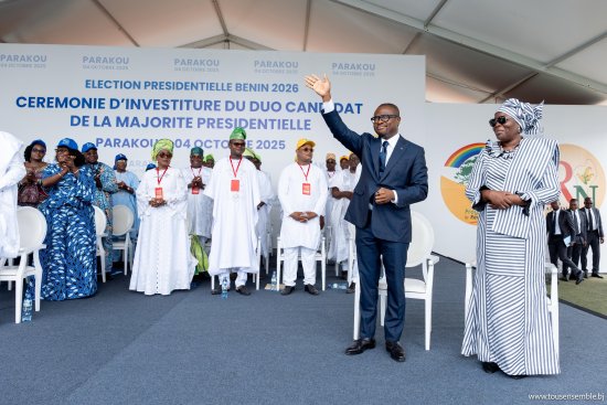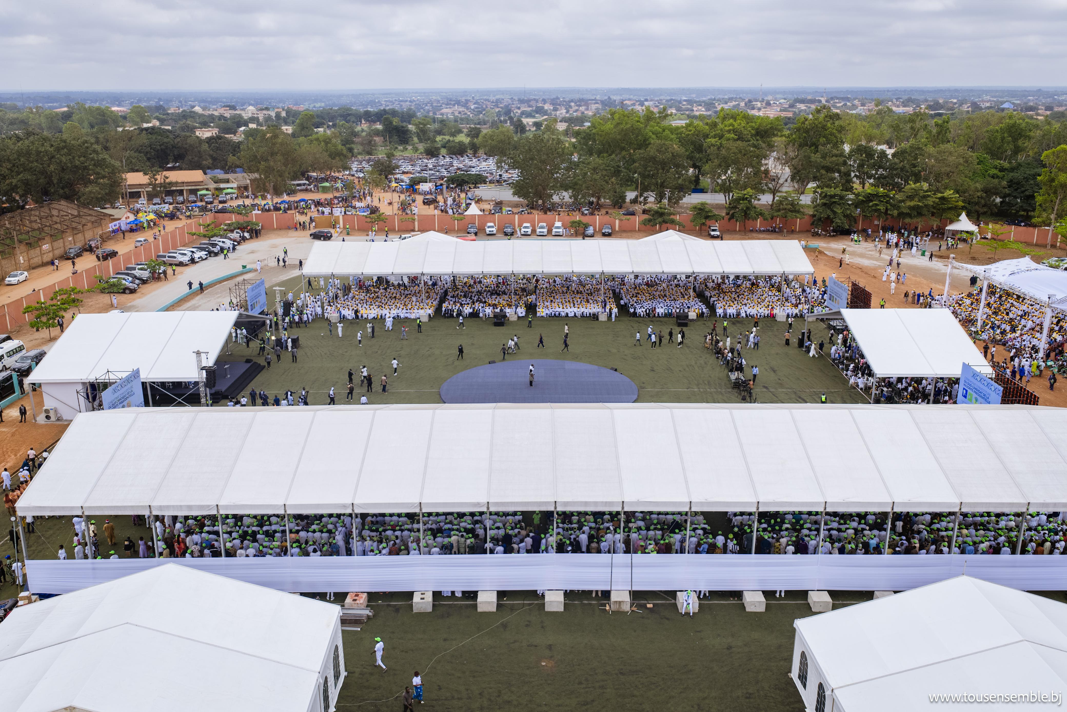 Le stade municipal de Parakou a accueilli ce samedi 04 octobre 2025, la cérémonie d’investiture de Romuald Wadagni-Mariam Talata, duo candidat de la mouvance à l’élection présidentielle 2026. Tous les présidents des quatre partis politiques de la majorité présidentielle (UPR, BR, Moele Bénin et Renaissance Nationale ) ainsi que le président de l’Assemblée nationale sont présents à Parakou. Les militants ont fait massivement le déplacement. Le stade municipal de Parakou est plein comme un oeuf. En images, les forts forts de cette cérémonie.