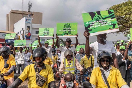 Femmes, jeunes, représentants de cultes endogènes et d’Organisations de la Société Civile (OSC) ont marché du siège du Bloc Républicain (BR) jusqu’à la place de l’Étoile Rouge, avant de revenir au lieu de départ dans la matinée du mercredi 10 décembre 2025. Vêtus de blanc, casquettes vertes vissées sur la tête, les manifestants brandissaient des pancartes portant des messages tels que : « Apatrides, vous avez échoué » ; « Aucun acte de sabotage ne détournera le Bénin » ; « Le Bénin toujours debout », « Plus unis, plus forts ». Sur d’autres, des mots de solidarité se lisaient : « Félicitations aux Forces de défense et de sécurité », « Compassion aux victimes ».