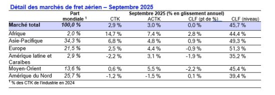 L’Association du transport aérien international (IATA) a publié ses données sur les marchés mondiaux de fret aérien en septembre 2025.