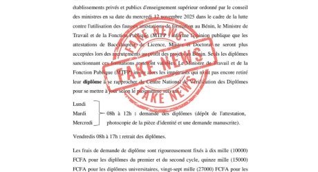 Un document attribué au Ministère du Travail et de la Fonction Publique (…)