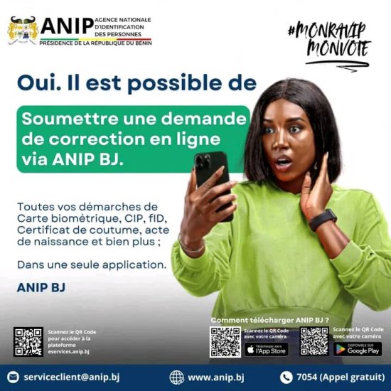 « Pas besoin de vous déplacer ni de faire le rang », pour corriger les erreurs constatées sur les documents délivrés par l’Agence Nationale d’Identification des Personnes (ANIP). Les corrections se font en ligne, assure l’ANIP dans un communiqué.